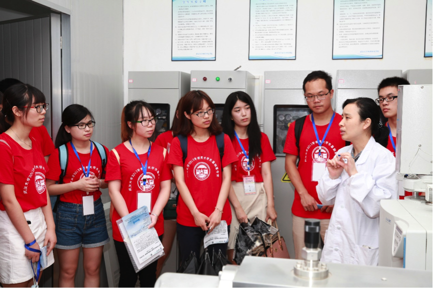(图二 潘国艳老师为营员介绍水文水资源实验室同位素仪)
