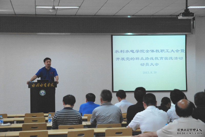 在工学部8304教室召开全体教职工大会,进行党的群众路线教育实践活动动员,以校职能部门领导任纮、朱华和陈虎组成的校教育实践活动第四督导组出席大会。