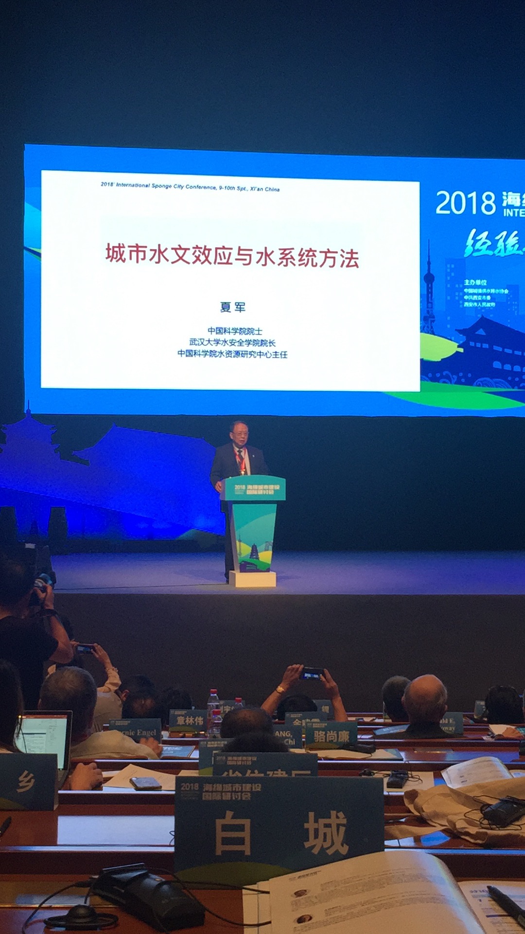 海绵城市研究中心主任夏军院士和副主任张翔教授受邀参加会议,夏军院士担任研讨会技术委员会共同主席。研讨会上,夏军院士应邀做了题为Urban Hydrological Attributes and the Water System Methodology(城市水文效应与水系统方法)的大会主旨报告,张翔教授做了题为The Urban Water Cycle System Modeling —— Theory,Framework and Application(城市水循环系统建模:理论、框架与应用)的分会场特邀报告。