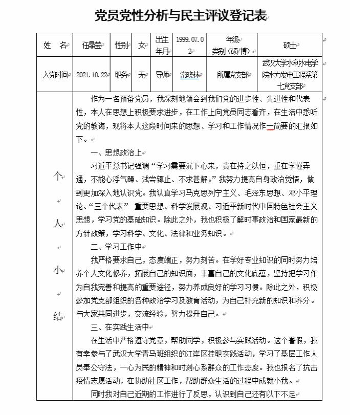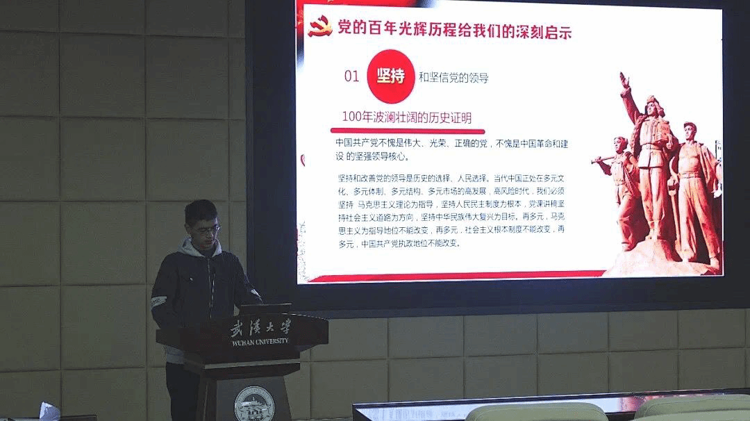 水电七党支部始终把旗帜鲜明讲政治作为建设的首要任务和核心内容。支部紧跟时代脉搏,密切结合课题组学科特色,引导成员坚定理想信念、牢固树立正确的价值取向。支部制定学习计划,每周交流学习心得,认真落实“三会一课”,组织各类理论学习百余次。支部创新理论学习形式,请支部党员承担领学任务,请科研导师讲示范党课。通过导师讲党课、党课人人讲、“头雁训练营”、“鲲鹏研习营”等方式,淬炼思想,营造良好政治学习氛围。在疫情期间,支部组织抗疫捐款,开展线上防疫思政理论学习,举办线上抗疫交流分享会,参观校抗击新冠肺炎抗击疫情特展,多位同学参加当地疫情防控志愿服务,并获组织嘉奖。支部开展社区学雷锋志愿服务活动,与省水利厅联合开展保护湖泊环境志愿行等,践行学雷锋精神。支部还积极开展实践活动,武汉革命红色教育户外行、大别山红色教育行、参观咸宁羊楼洞烈士陵园等户外主题党日活动,让党员们汲取革命精神力量、厚植爱国主义情怀、提升政治素养。