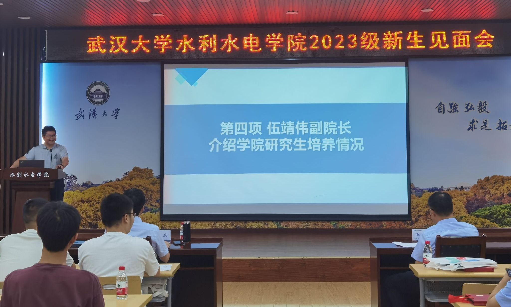 谈及本科生下一阶段的研究生教育,伍靖伟副院长介绍了研究生培养与本科培养的衔接关系。希望大家保持优良的学习习惯,做好自我管理,并鼓励大家继续深造,成为水利行业领域的高端人才,以更高的知识水平和知识覆盖面为社会做贡献。