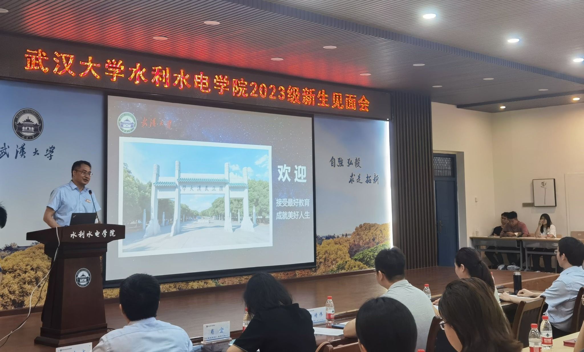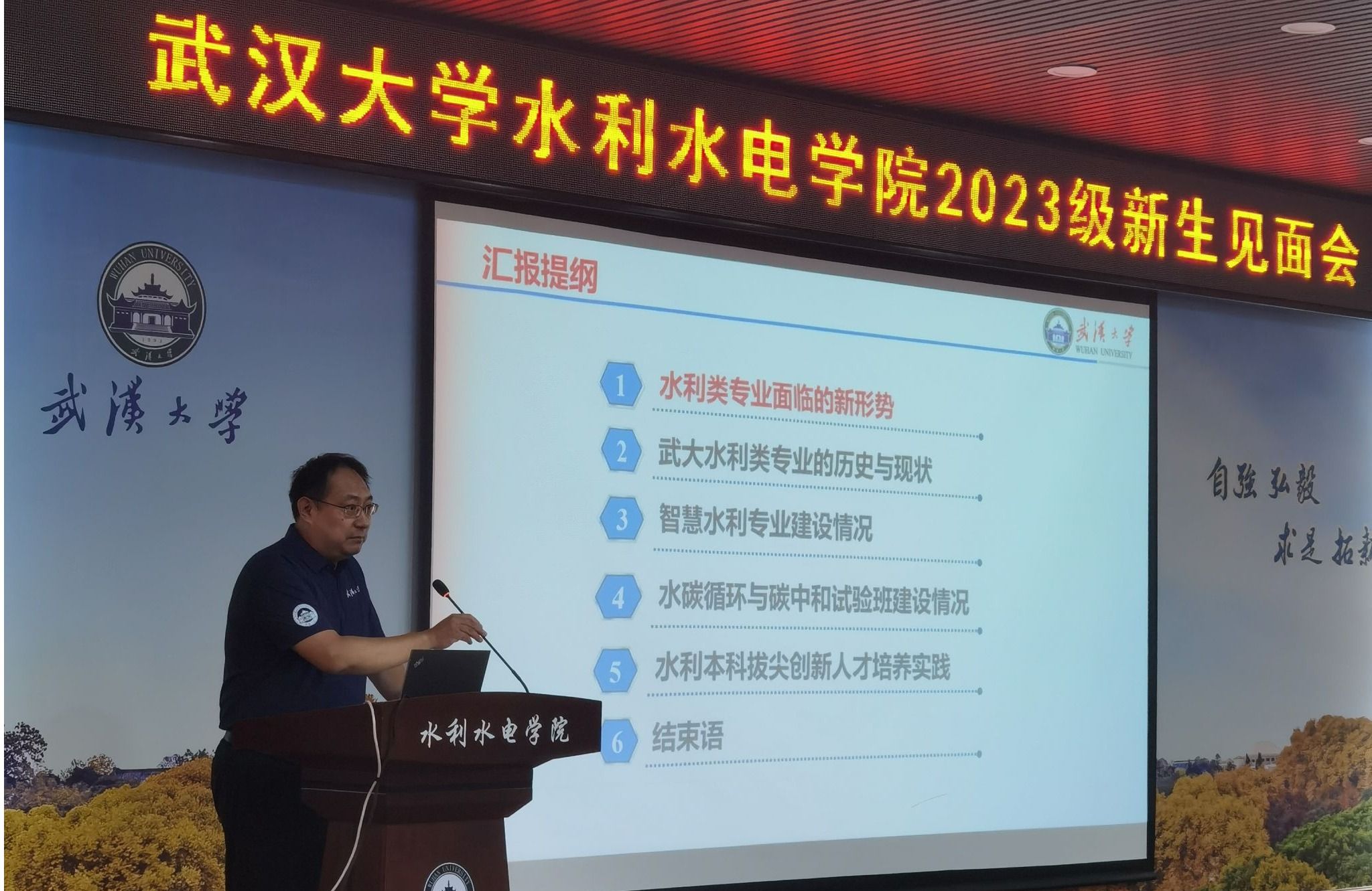 接着李典庆书记向新生提出了三点希望:一是成为有梦想,敢奋斗的新时代水院人;二是以勤恳姿态立学,尽快适应大学学习和生活;三是善于利用学校的优质学习资源,全方位提升自己。李典庆书记希望同学们不负党和国家的重托,不负色播app