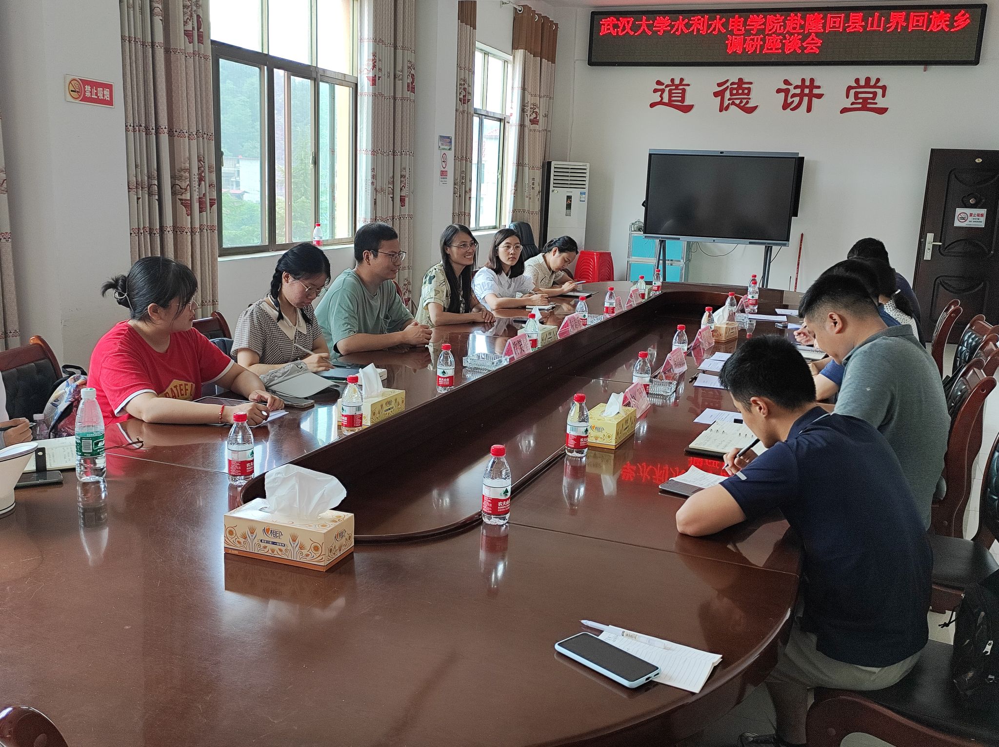 在山界回族乡人民政府会议室,隆回县委组织部部长李翠婷,组织部常务副部长马向阳,山界回族乡党委书记李伟楠,山界回族乡乡长黄检波与实践队一行开展座谈。校友李伟楠首先介绍了他从水利厅到扶贫队再到县乡的五年工作经历,并总结了在基层工作的经验和感悟。他表示青年学子要将自己的前途选择与时代发展的大浪潮有效衔接在一起,要培养终身学习的习惯,发扬团结协作的精神。对于如何平衡工作和生活,李伟楠分享道:“要合理分配时间,将时间规划到每天,见缝插针地学习知识、培养爱好,做到有效地释放情绪,积极充实地生活”。黄检波从特色农产品,饮食,服装,节日四个方面介绍了山界回族乡的人文历史情况。