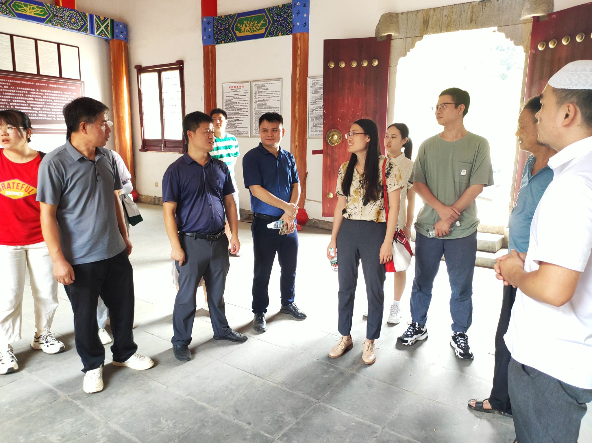 在山界回族乡乡长黄检波的带领下,实践队参观了老屋村清真古寺。该寺始建于明朝,是隆回县内修建最早的一座清真寺,现为隆回县文物保护单位,大殿、厢房等主体部分连成一体,保持着中国古典建筑的风格,寺内木雕、石雕等极具文物保护价值。黄乡长介绍道:“隆回县是一个多民族散居大县,境内居住着汉族、回族、瑶族等37个民族,有虎形山瑶族乡和山界回族乡两个民族乡,是一个‘石榴花开,籽籽同心’的民族融合大家庭,清真古寺的改造重建也有汉族同胞的鼎力相助。”