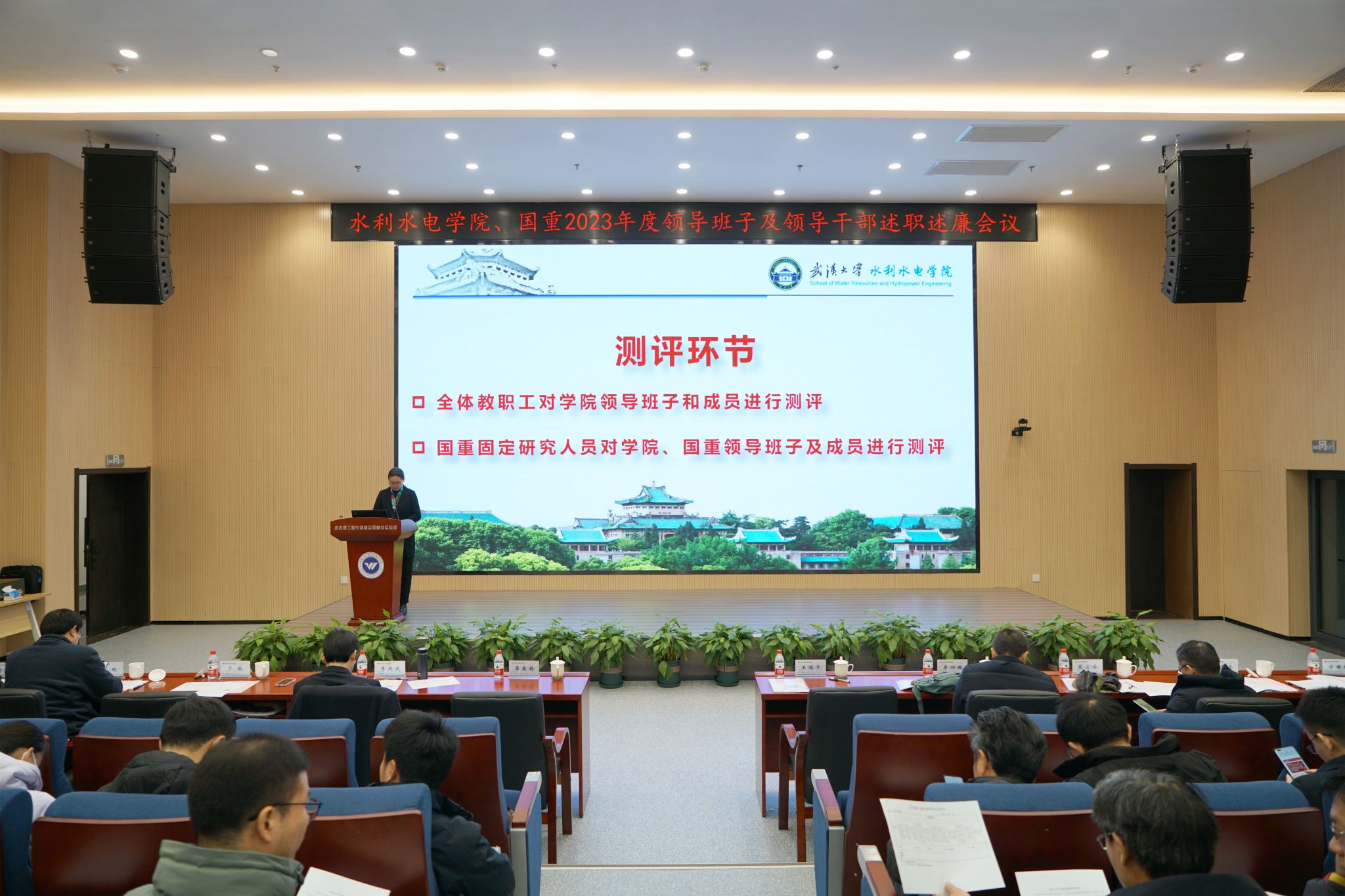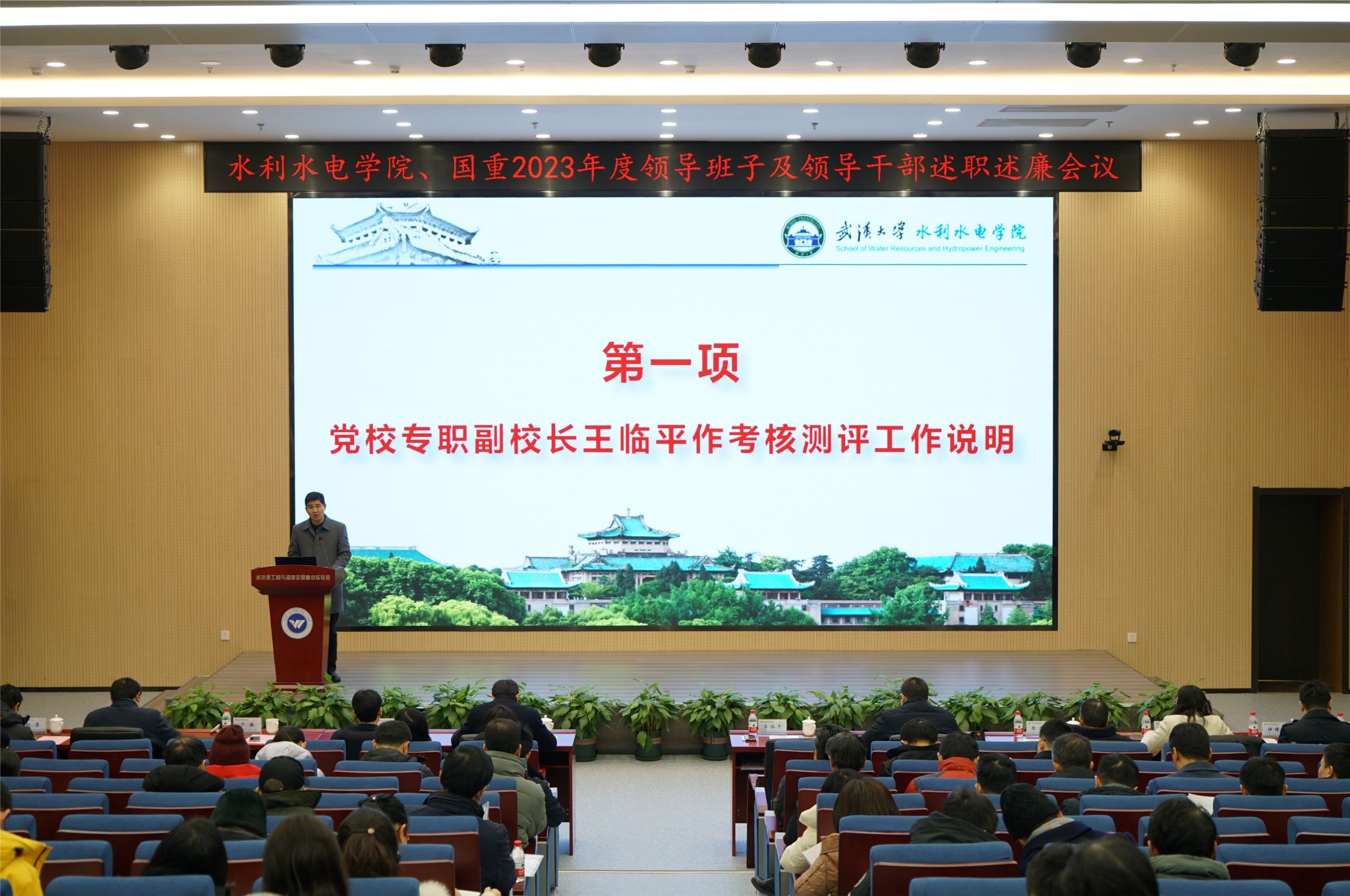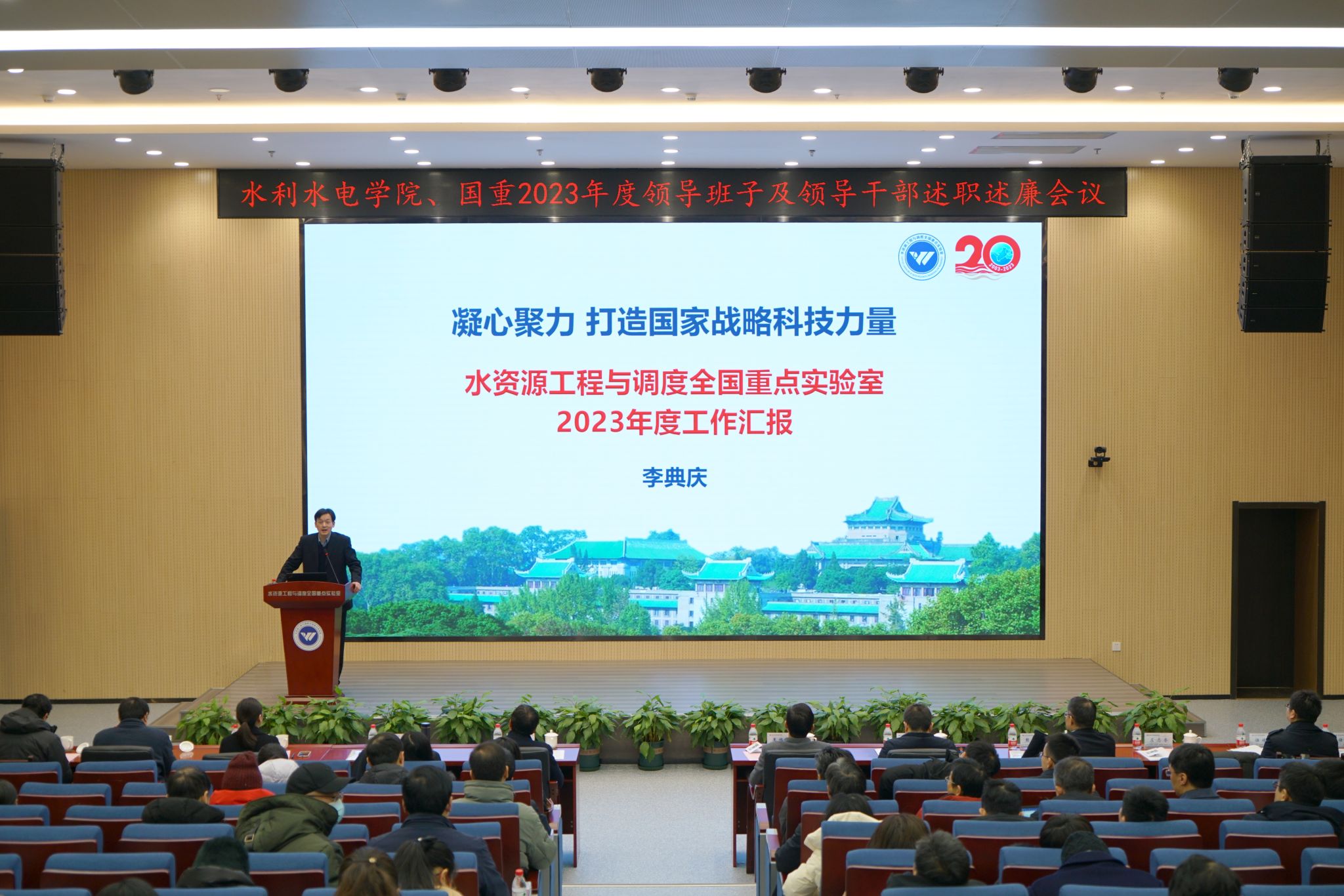 党委书记、全国重点实验室主任李典庆,院长熊立华等班子成员及全体在校教职工参会。会议由党委副书记于敏主持。