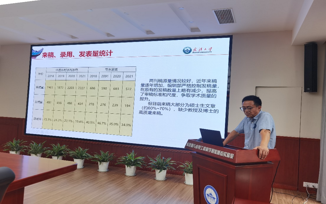 于6月27日下午召开了“两刊编辑部座谈交流会”,围绕如何提升办刊水平,更便利和精准为师生服务展开热烈讨论。水资源与水电工程科学国家重点实验室主任、副院长李典庆、副院长伍靖伟、两刊编辑部支部书记刘锋、主任徐占国及全体成员参加了此次座谈会,座谈会由李典庆主持。