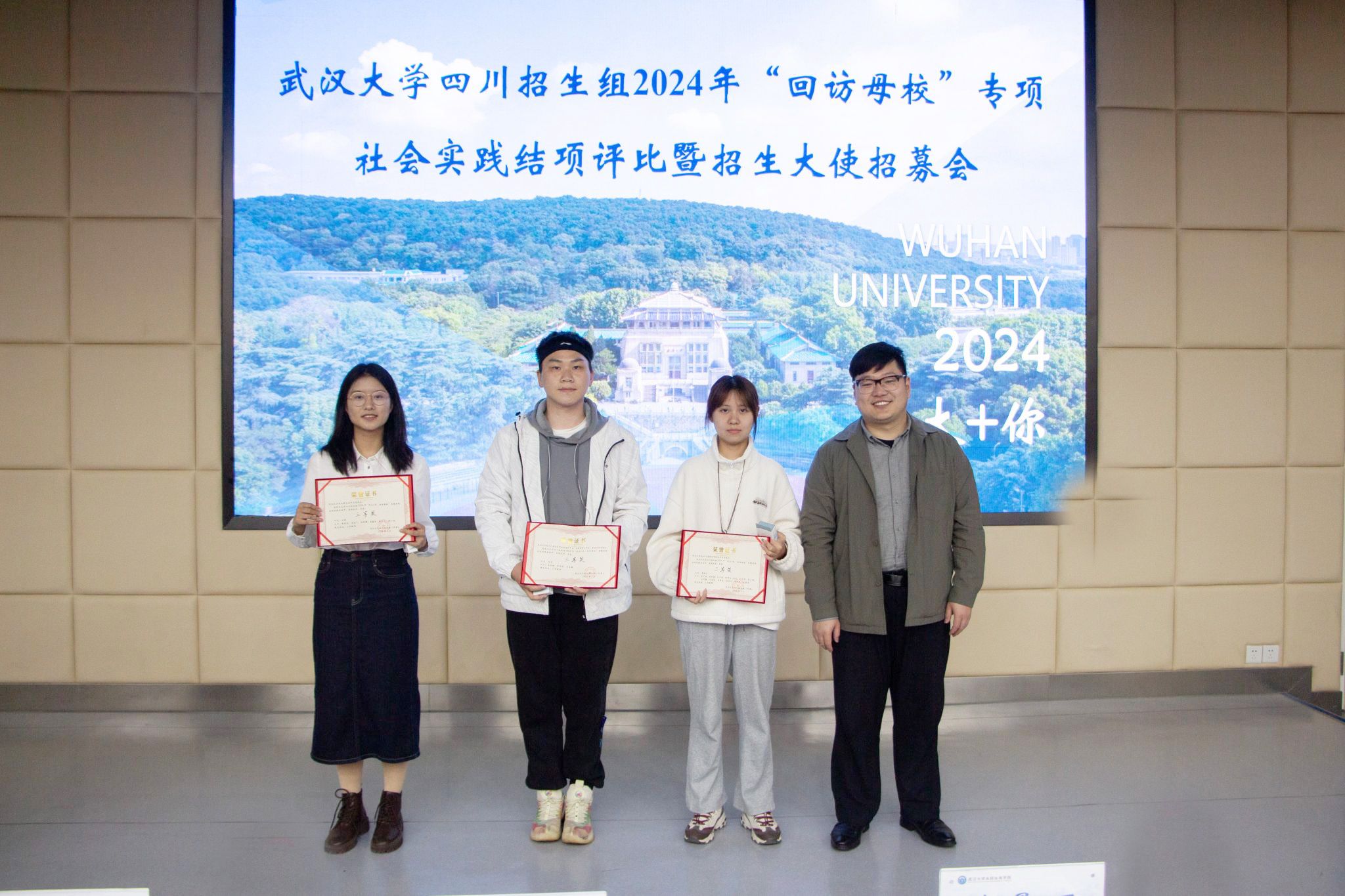 本次“回访母校”专项实践结项评比暨招生大使招募会既是对实践工作的总结,也是对四川招生工作开启新征程的部署与展望,期待通过此次活动,吸引更多优秀的四川学子报考武大,促进四川招生工作更上新台阶。