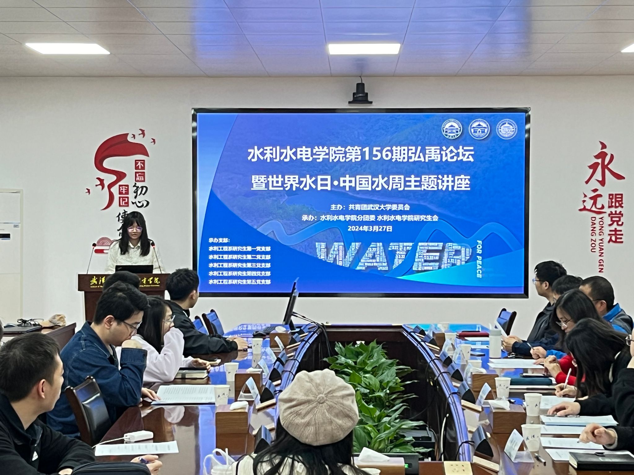 在国际青年水论坛上,青年们探讨全球水资源问题,共同为水资源的保护、水文化的传承出谋划策。自摩洛哥的何晓娜博士以《水资源在塑造我们集体命运方面的重要性》为题,谈到水资源短缺不是一个遥远的威胁,而是数百万人每天面临的严峻现实,号召大家致力于节约用水、珍惜水、拥抱水文化。朱想以《让珞珈之水生生不息》为题,从家乡的沧桑变化中,感悟到水利对国计民生的重要性,立志要像武大水利前辈们一样,为国家水利事业添砖加瓦。杨嘉怡讲述了自身前往黄河、珠江流域调研水生态治理的实践经历,看南粤珠江治水担先锋,观百年黄河治理守安澜,关注在解决全球水危机中的中国方案。朱馨悦回首水利工程发展史,从李冰父子修建都江堰,到苏东坡处处筑苏堤,再到如今国家水网建设,一代又一代水利人“心之所系,情之所归”,在矢志奋斗中谱写时代之歌。刘文锦以《精打细算节水“仗”》为题,将水与农作物的关系娓娓道来,未来将用科技为碧水清流护航,奏好新时期的水之交响。周慧明以一首充满深情的朗诵——《如果我是一滴水》,将论坛推向高潮,从一滴水的视角,呼吁大家用心呵护、用爱守护每一滴水。