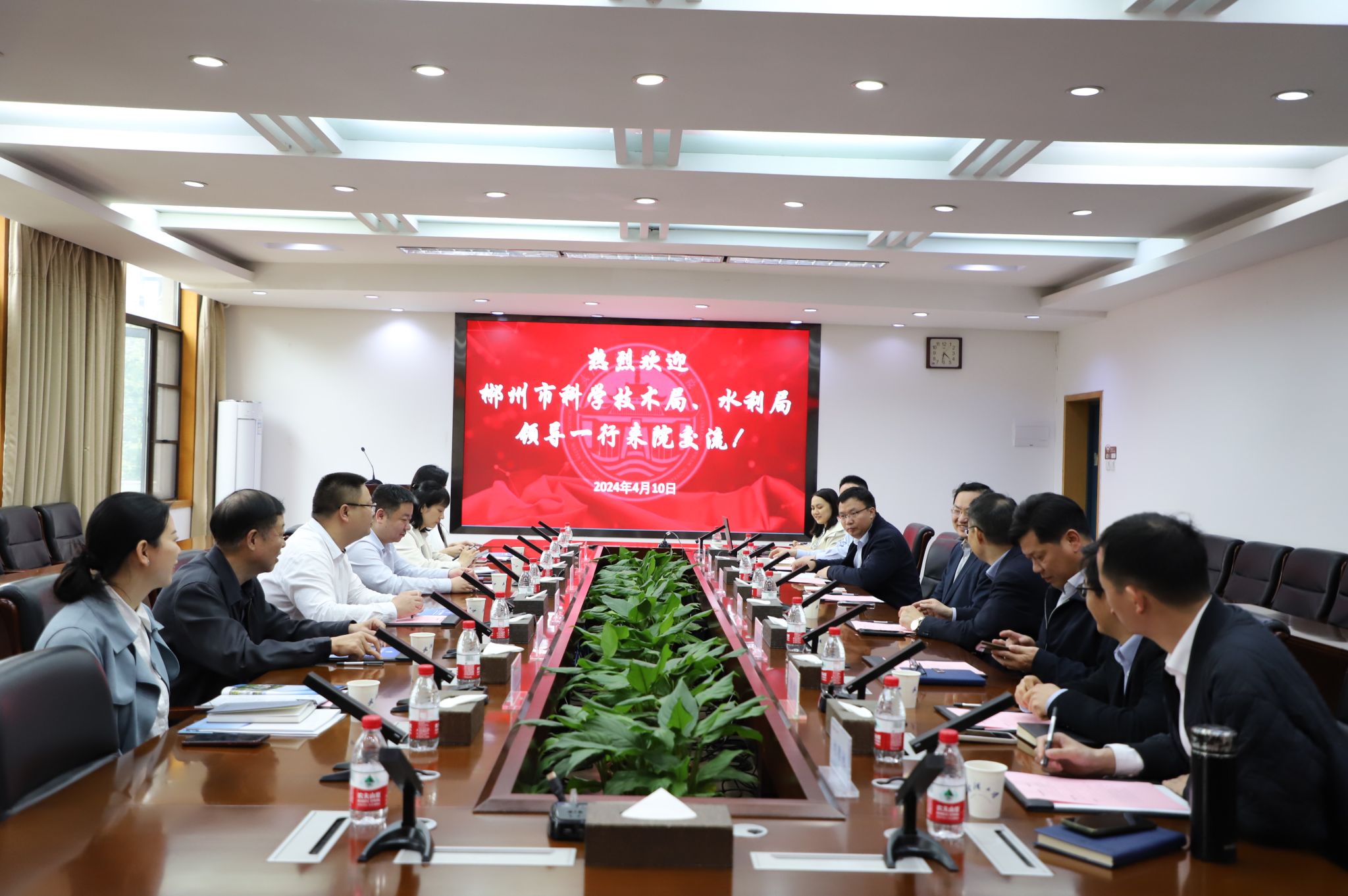 4月10日下午,郴州市科技局党组书记、局长肖亮,党组成员、副局长王丹,水利局党组成员、副局长何兴华一行六人来院洽谈校地合作。座谈会由色播app