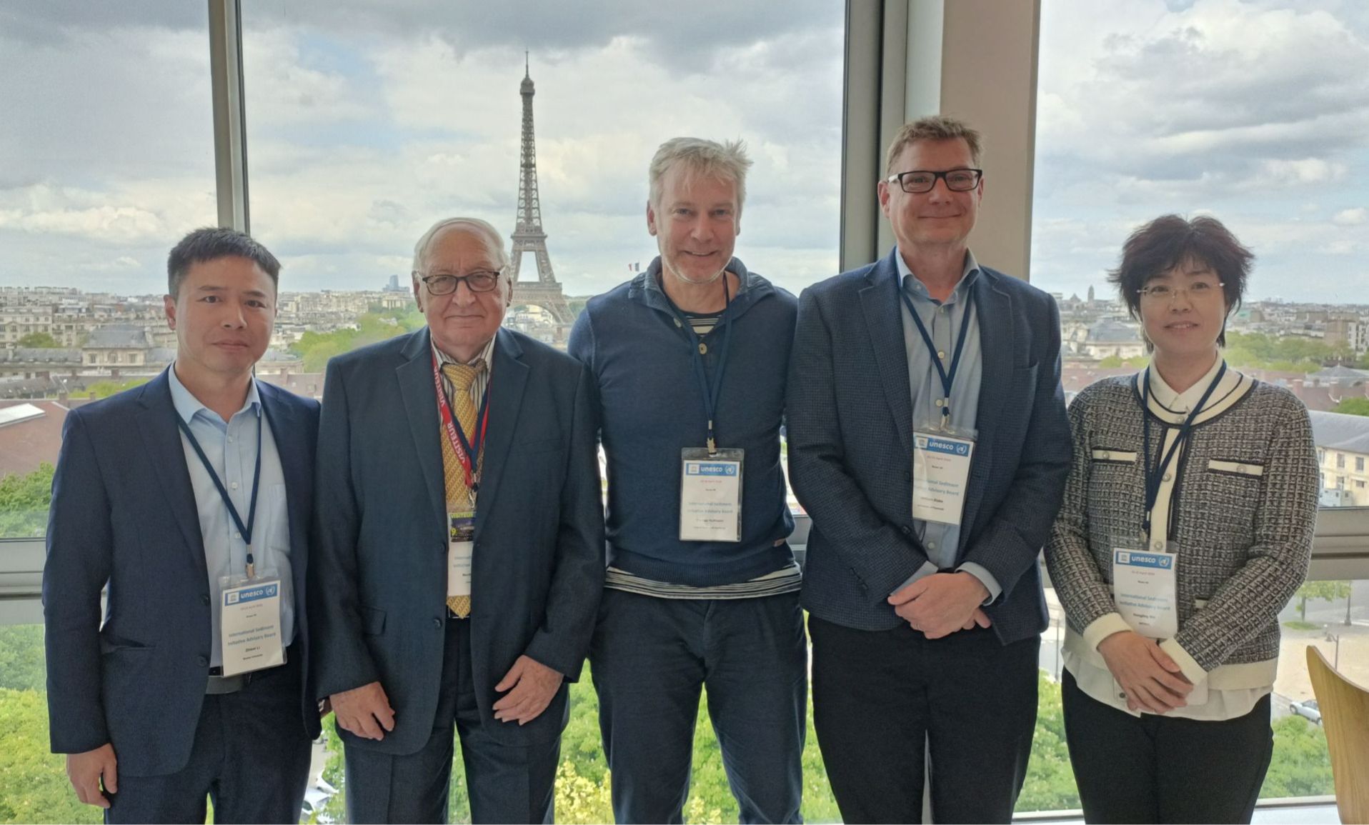 李志威副教授与刘成正高级工程师、史红玲副处长在联合国教科文组织UNESCO巴黎总部合影