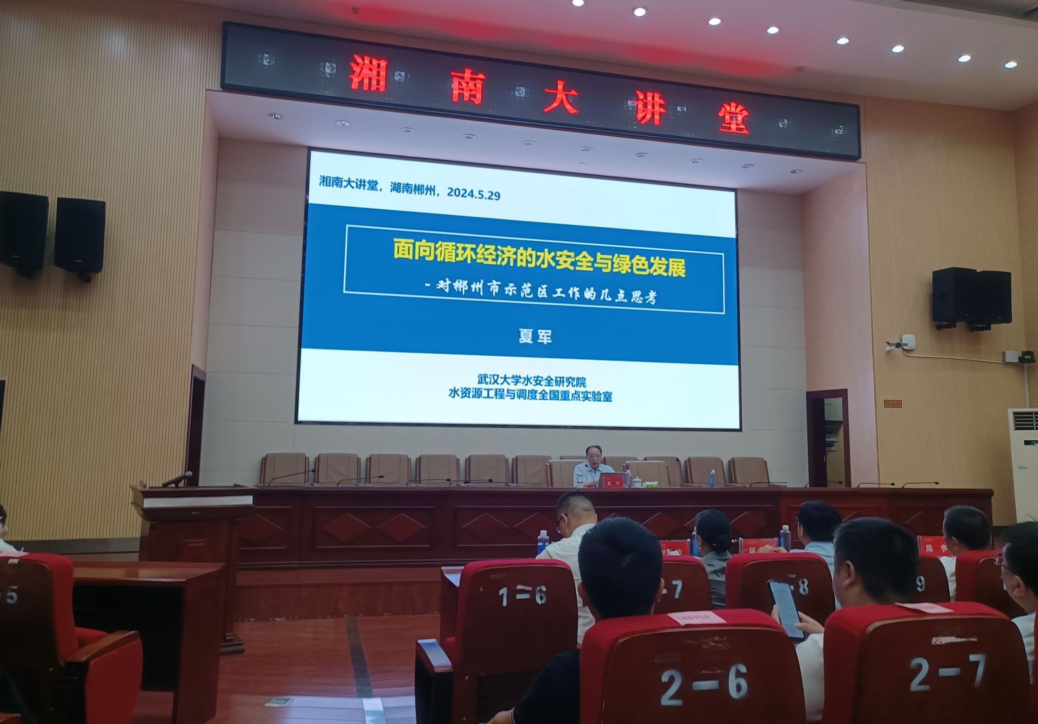 5月29日,夏军院士在湘南大讲堂为郴州市政府、各市直相关职能部门干部以及湘南色播app