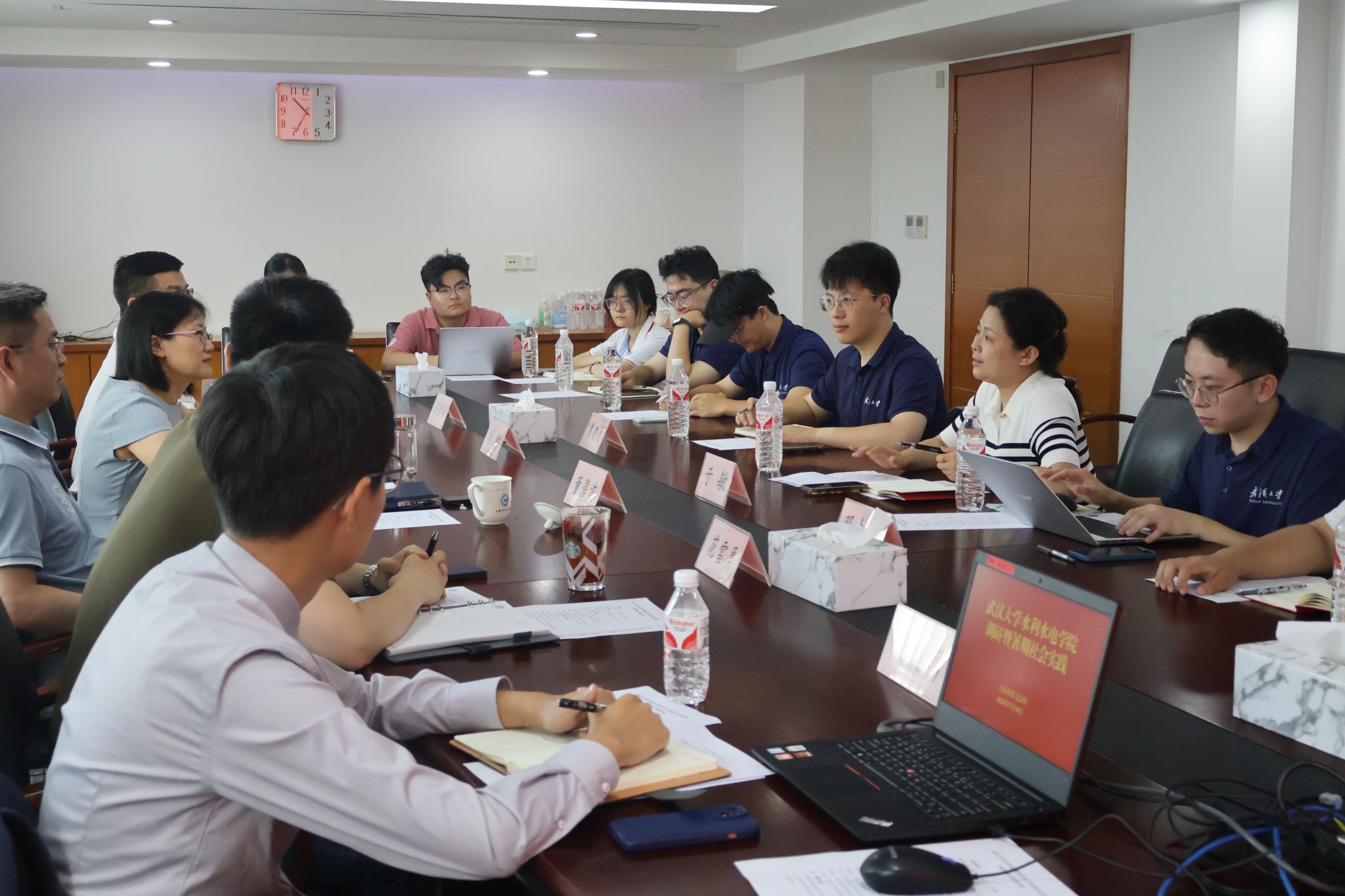 党委副书记于敏带队与上海水文总站党委书记董碧波等多名校友交流学科发展、人才培养以及上海城市防洪减灾情况。董碧波表示,上海水文总站是城市防洪减灾的重要一环,在防灾减灾过程中构建了“三道防线”体系,通过建设完善由气象卫星和测雨雷达系统构成的“云中雨”监测预报防线、雨量站网构成的“落地雨”监测预报防线和水文站网构成的“洪水演进”监测预报防线,水文总站得以迅速响应各类水情变化,为城市防洪减灾提供及时、准确的信息支持。实践队员们还就大型城市洪涝灾害防治的探索、雨水情监测预报手段适用性等方面的问题展开深入探讨,学习交流先进经验,共话长江流域水安全治理。