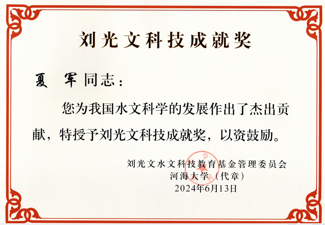夏军教授荣获本年度“刘光文科技成就奖“。