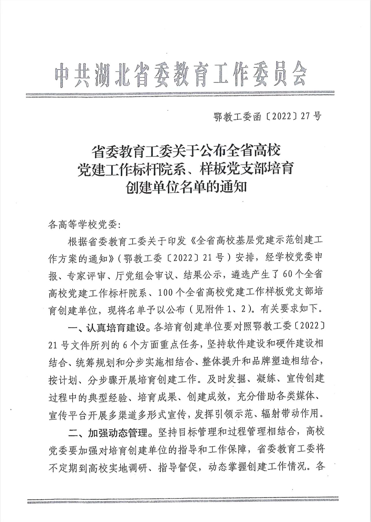 党委成功入选湖北省高校党建工作标杆院系培育创建单位(色播app