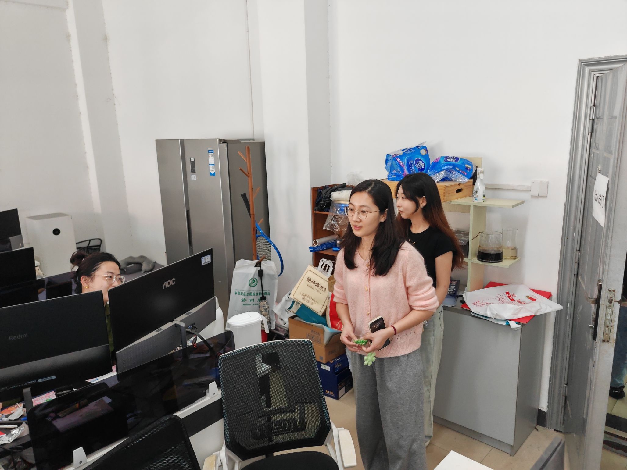 在此次走访活动中,老师们与同学们亲切交谈,答疑解惑,整个实验室充满了和谐与欢乐。在交谈中,老师与同学们深入交流,从专业学习、实践经历、科研训练等多个方面探讨了如何更好地提高自己的能力及知识水平,还将自己的经验分享给同学们,帮助他们更好地提升科研能力,解决生活问题。活动在研究生辅导员陈曼雨老师、许笑星老师、万柳柳老师,刘萍老师的带领下有序开展。