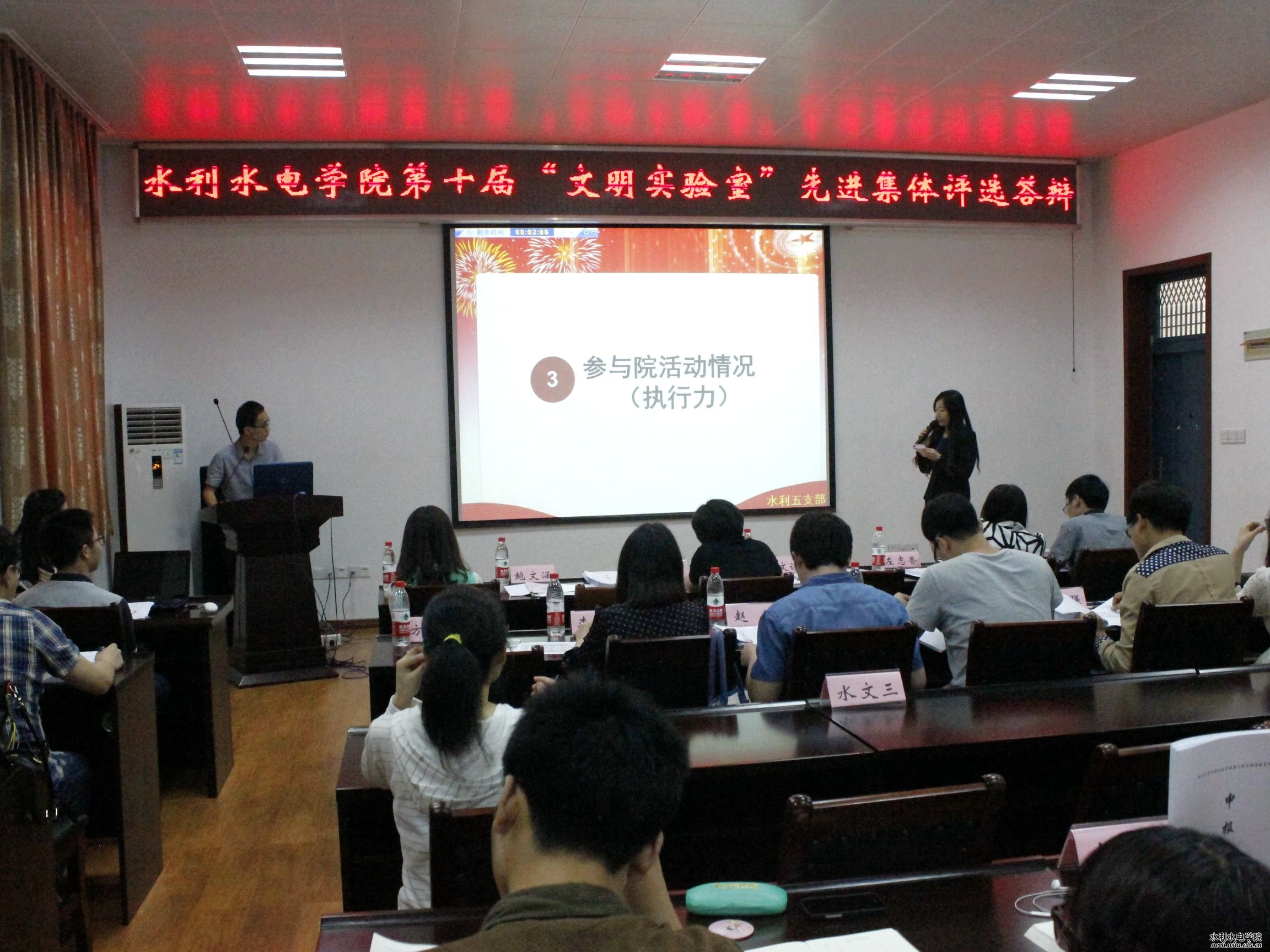 在答辩环节中,17个入选的党支部代表纷纷上台,分别围绕组织建设、制度创新、参与院活动、自主开展活动情况、工作创新等几个方面进行展示,各个支部各具特色,活力四射:科研型支部、温馨型党支部、文明型党支部、运动型党支部……一个个精彩的答辩,赢得了阵阵掌声。本次评选由基础评比和现场答辩两部分组成,经过综合评分,水文1、水文2、水电7、水电10、水利3、水电5、水利2、水利5、水利4、水文3十个党支部获得了“文明实验室”先进集体称号。水利1、河流3、水电8三个党支部获得了“优秀组织奖”。